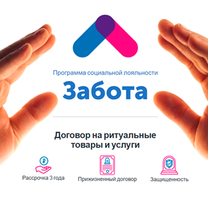 Важно – независимо от инфляции и волатильности рубля на момент наступления события, программа социальной лояльности «Забота» гарантирует покупательную способность прижизненно оплаченного Договора на комплексный пакет ритуальных товаров и услуг стоимостью 150 000 ₽